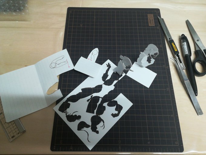 展開図はこんな感じ。 指を折りきらずに柔らかく丸める技法を身に付けました。 最近導入したレーザーカッターのおかげで、かなり細部まで切り込めるようになったのが嬉しい。 新作映画も見に行くぞ! #ヴァイオレット・エヴァーガーデン #VioletEvergarden #ペーパークラフト #peparcraft #papercut