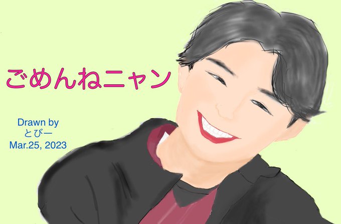 1 6 きゃわわな亮くんイラストできました‼️ごめんねニャン☺️な亮くん💕(文字が小さかったので修正しました)#吉沢亮 くん #推し #イラスト #ごめんねニャン 23/03/25 12:25