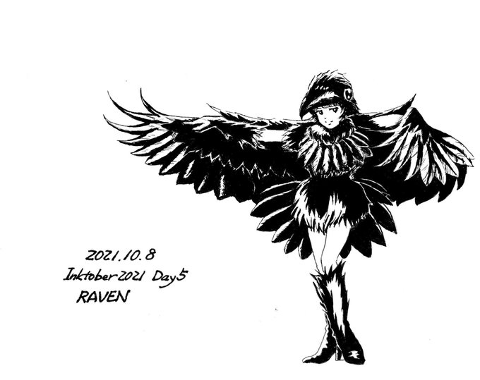 #inktober2021 5日目 テーマは RAVEN カラス 烏は鴉でもワタリガラスという種類になるそうです インスタにも投稿してますが、Twitterは1日遅れて投稿(まあ成り行きで😅) #inktober2021day5 #絵描きさんと繋がたい