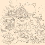 月から帰ってきた日、お風呂に入ってコンビニで買ったお酒と団子を食べます。 #グラフィックデザイン #キャラクターデザイン #illustration #イラストレーション #イラスト #design #デザイン #art #アート #線画 #lineart #harvestmoon #astronaut #お月見 #中秋の名月