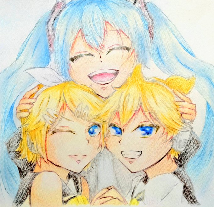 仲良し3人組 #初音ミク #鏡音リン #鏡音レン #VOCALOID #色鉛筆