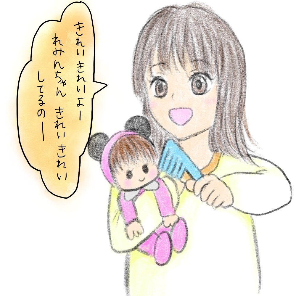 0 7 長女2歳5ヶ月、弟が生まれ、弟の代わりに人形をお世話している。 #娘 #イラスト #育児絵日記 #育児 #イラスト練習中 #デジタルイラスト 22/05/01 20:02