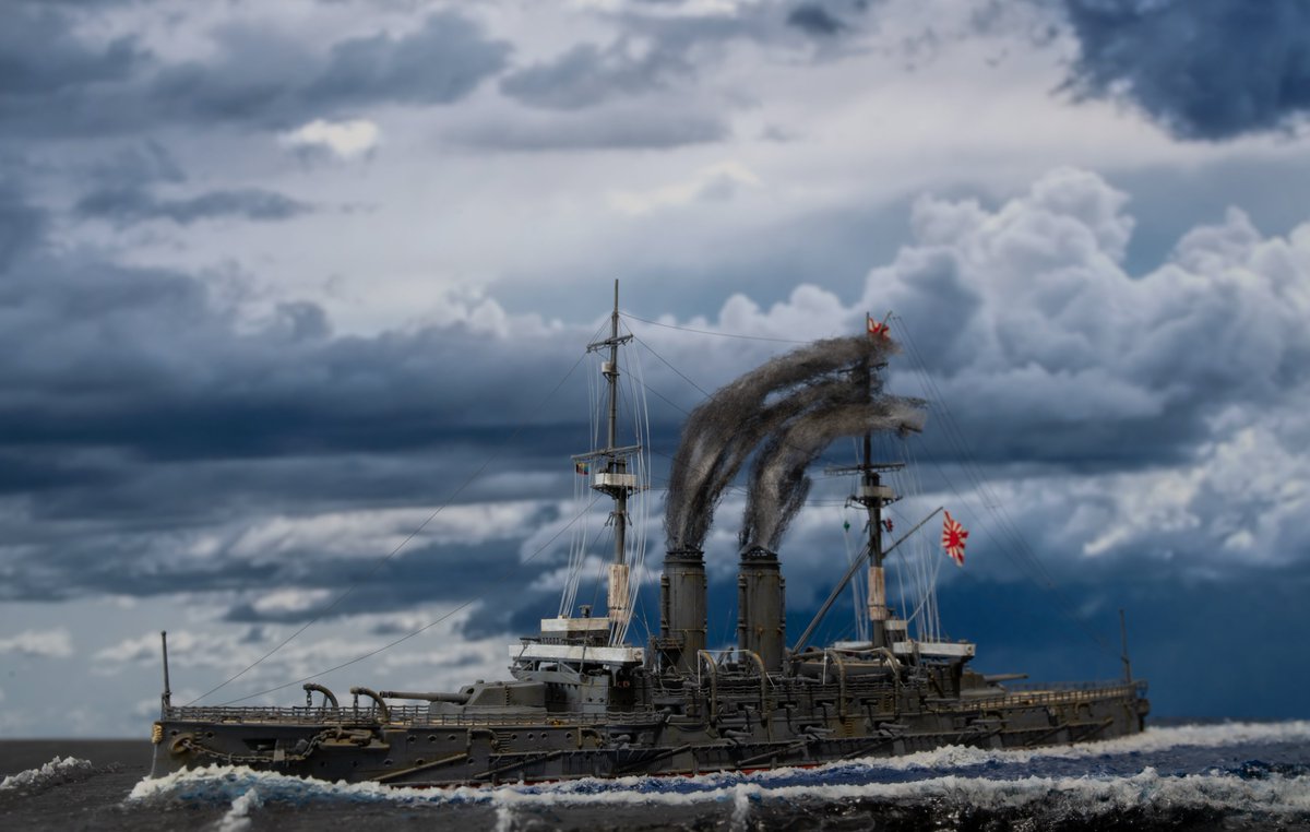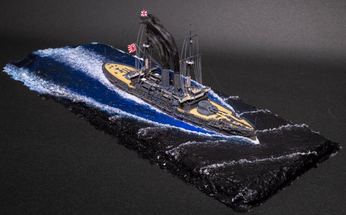 3 24 #今月作ったプラモ晒そうぜ ハセガワ1/700戦艦三笠日本海海戦時です。ベースは100均のスレート板です。 21/07/30 23:25