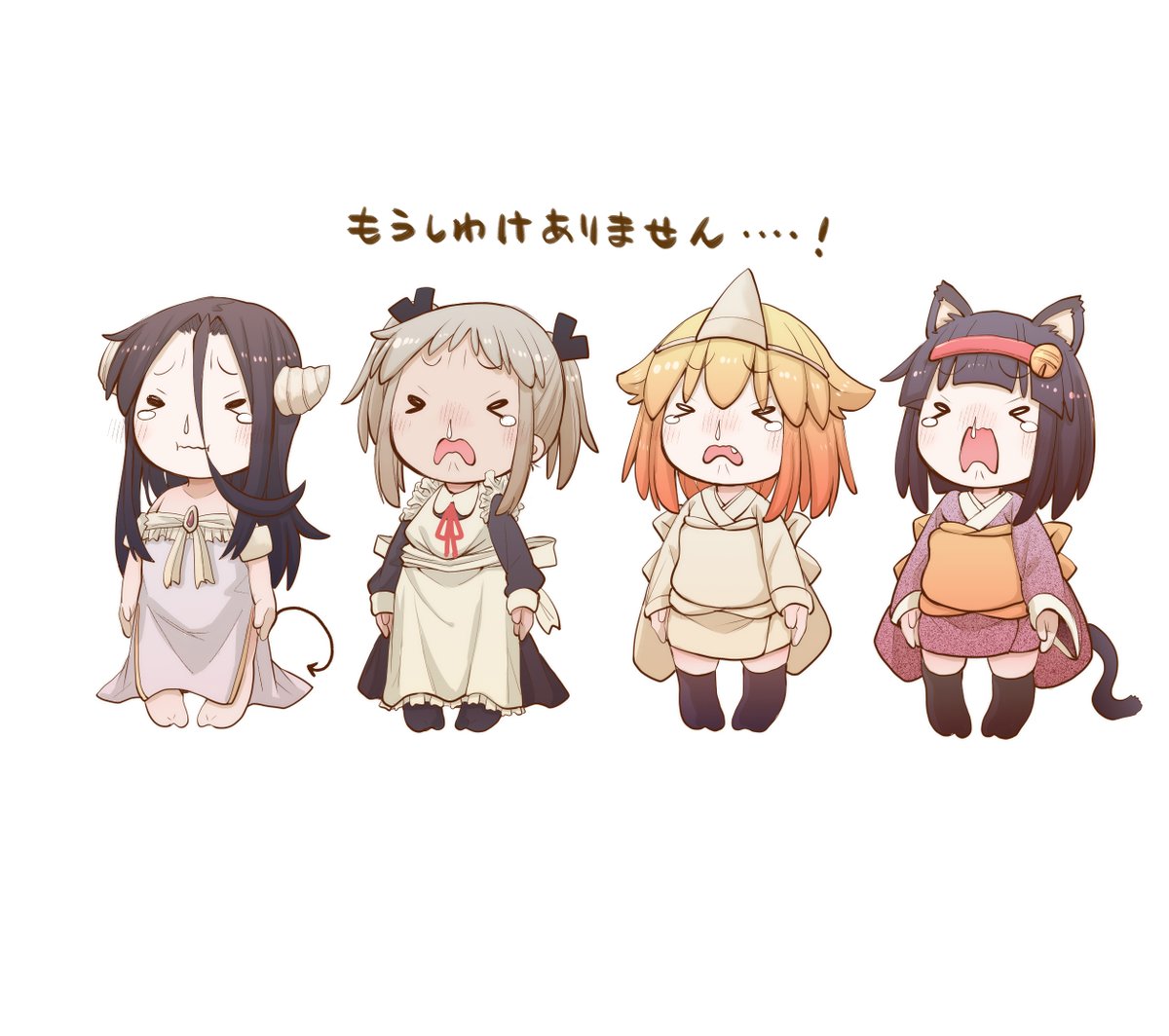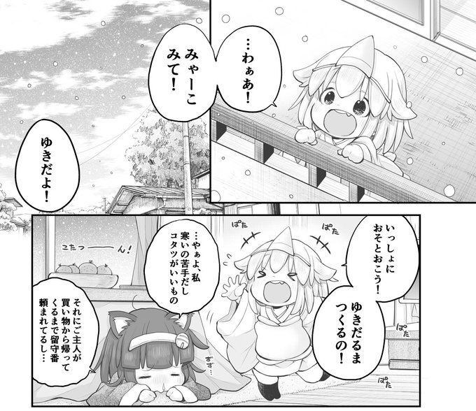 残業するなら誰とする? ①一緒に仕事を手伝ってくれる化け猫後輩。 ②なんだかんだ先に手伝ってくれてるメイド上司。 ③人恋しい夜にのじゃもふブランケット。 ④残業は寝て待つ幼女幽霊。 #社畜さんは幼女幽霊に癒されたい。