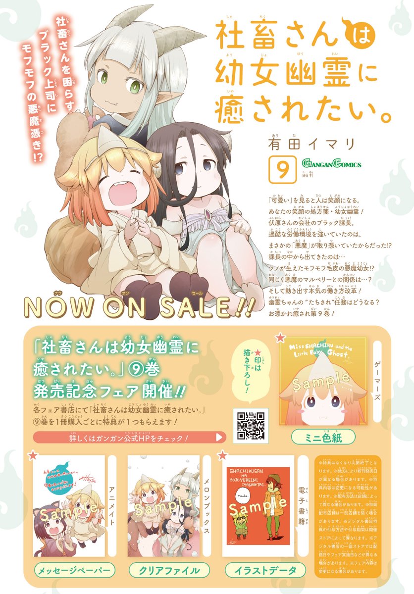本日5月11日に「社畜さんは幼女幽霊に癒されたい。」の9巻が発売です!今回も全国様々な書店さんや電子書籍で特典も貰えますので、チェックして頂けたら嬉しいです!単行本でしか見れない子達も結構いますのでそんな子達をどうぞよろしくお願いしますです!! →amazon.co.jp/dp/4757585667