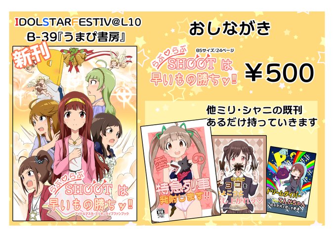 あらためてISF10のお品書きになります。 ミリ・シャニの既刊もあるだけ持っていきます。 サンプルはツリーにはりまうs #ISF10