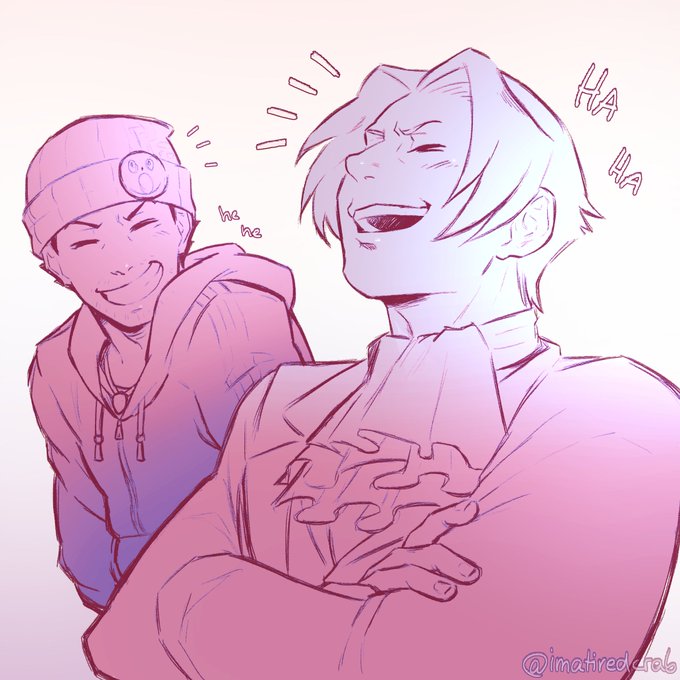 I like to imagine Feenie showing off his gf's self-made sweater just as much as he loves showing off his badge. Larry is not amused. #AceAttorney #phoenixwright #larrybutz