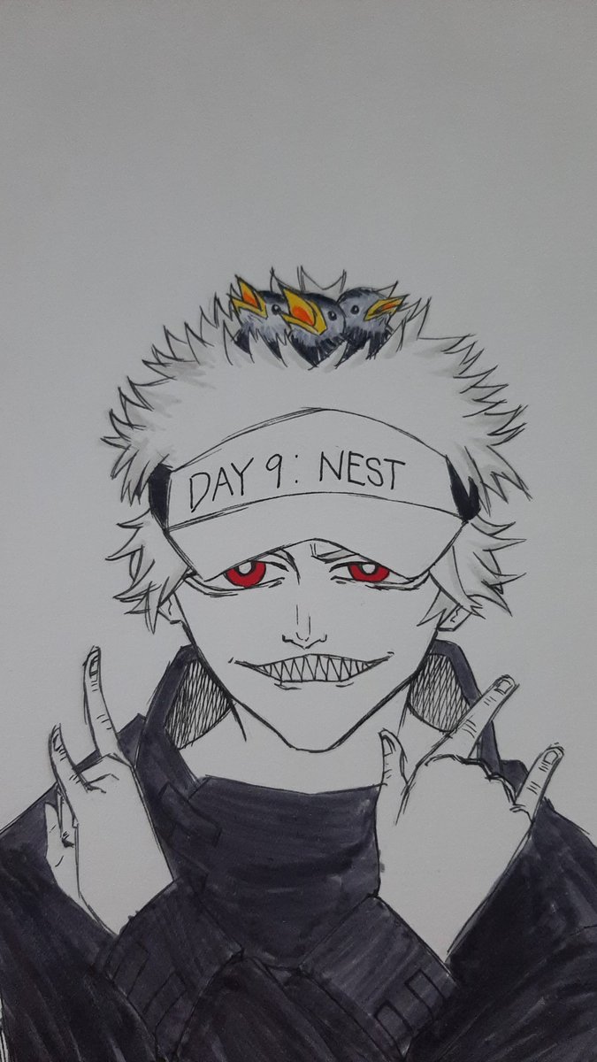 Day 9, nest. Awful idea to use that gray for the hoodie. Also my hands look awful lmao #inktober #inktober2022