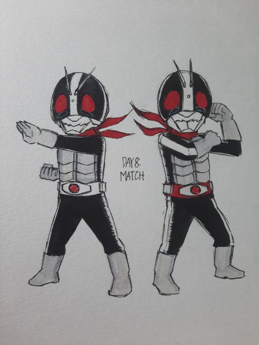 Day 8 is Kamen Rider 1 and 2. I botched the grays though, they ended up looking about the exact same lmao #inktober #inktober2022 #KamenRider