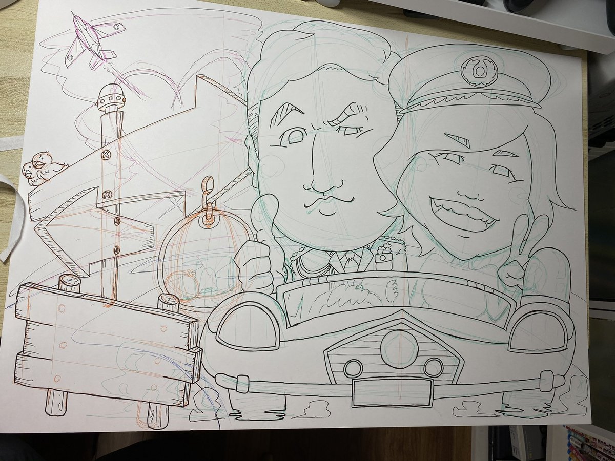 友達のウェルカムボード、ようやく完成! お待たせしましたー! おめでとう!!! #イラスト #illustration #イラスト好きさんと繋がりたい #絵描きさんと繋がりたい #アトリエの系譜 #結婚式 #ウェルカムボード #手作り