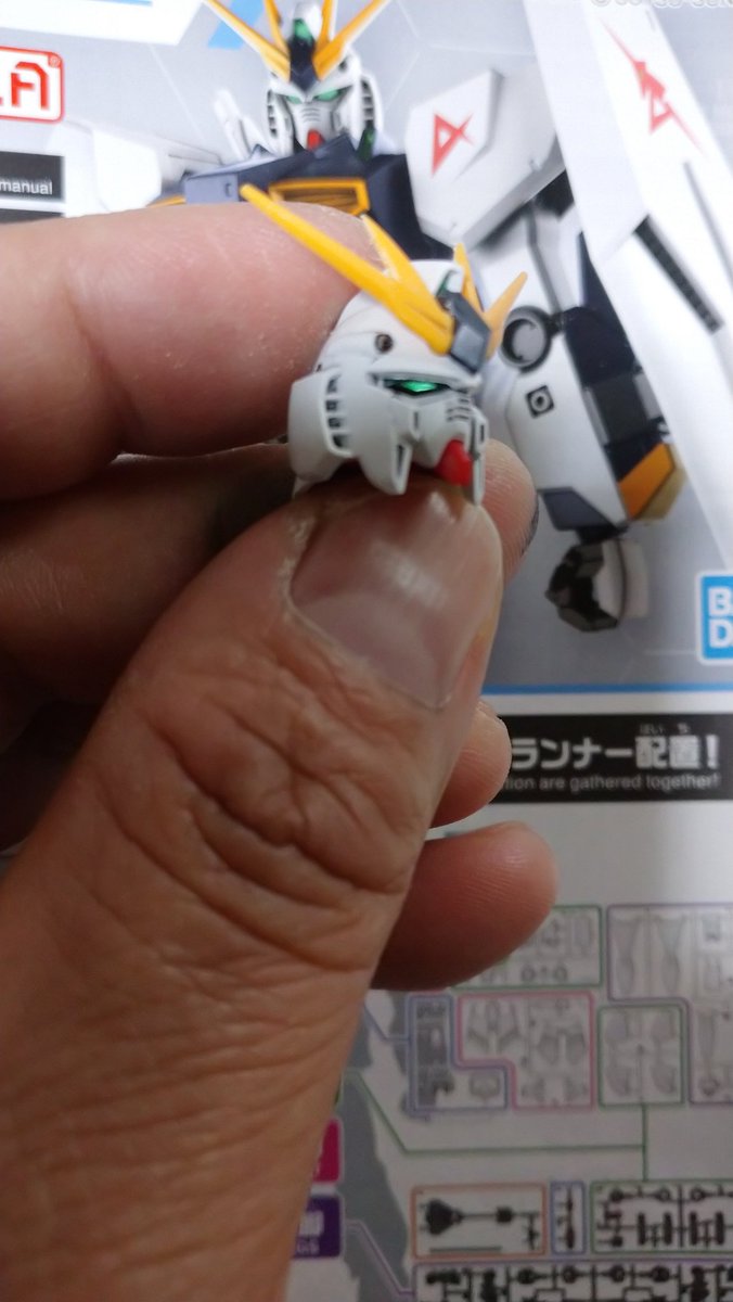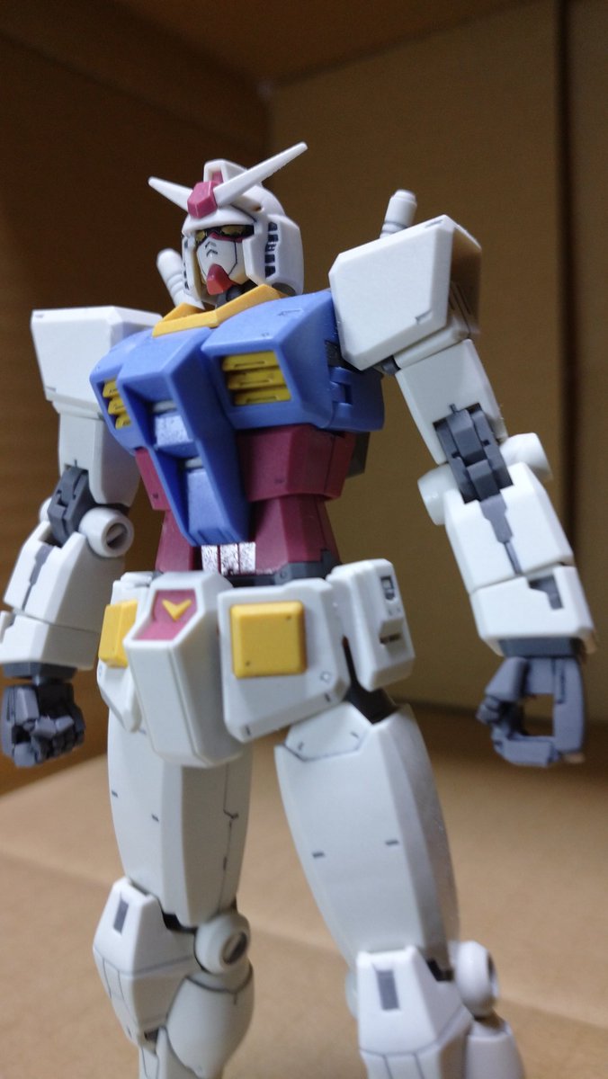 卵殻プラスチック使用のEGガンダム、金属ヤスリかけたら削った部分が真っ白になってビックリしたが紙ヤスリで整えたら大丈夫だった。 #ガンプラ