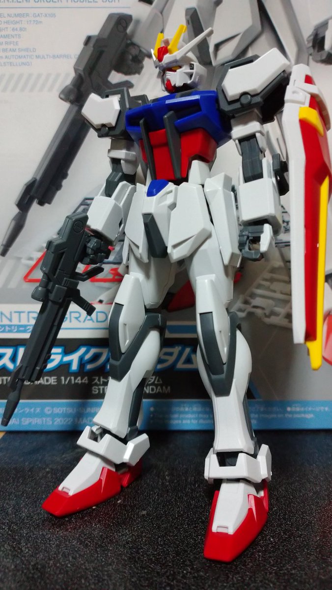 今年に入ってからまだガンプラを組んでないことに気付いたのでEGストライクをパチった。 武器込み一時間でサクッと組めて満足度が高いなぁ。 #ガンプラ