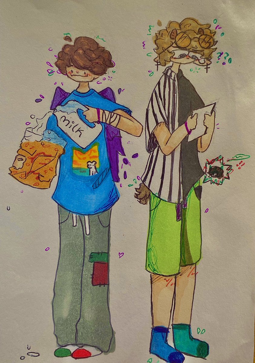 -realised my drawing looks like beeduo so- tubbo pouring milk in a cereal bag and ranboo trying to read and understand “how to cook: for beginners” -> [rts are appriciated] —> #beeduofanart #beeduo #ranboofanart #tubbofanart