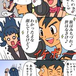 新OP、現W主人公のデュエットになりそうで楽しみ!と思いながらハイタッチ!を歌うサトシとヒカリの漫画を描きました