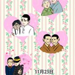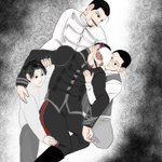 お題:銭湯の日(温泉、お風呂も可) 菊田の湯。宇佐美が小っちゃくなっちゃった。二階堂お湯かけられなくてごめん。全員初めて描いたのもあってとにかく不安になる絵になりました。 #ゴールデンカムイ版深夜の真剣お絵描き60分一本勝負