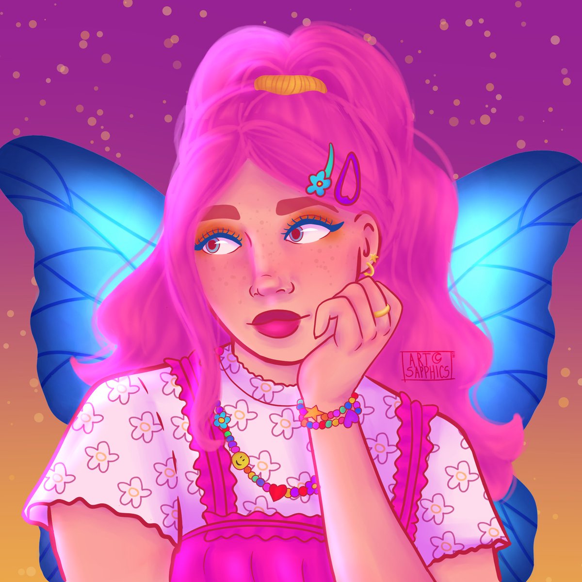 não tenho nem foto nem desenho novo, mas aqui tá o meu #artvsartist2021 / #artvsartist bem a tempo do #pride month 💗💜💙