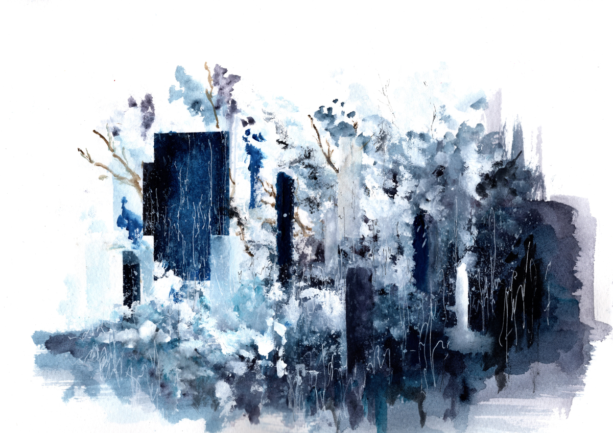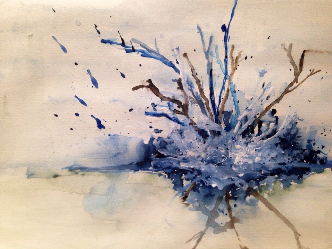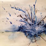 #誰かの推し作家になりたい 青を中心とした水彩絵の具で抽象画 を描いています