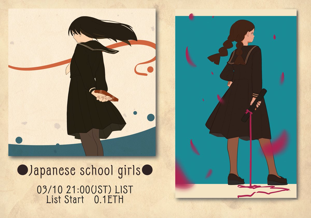🌺Notice of new items🌺 Since it's graduation season for Japanese students, we've added two new illustrations to School Girls! 03/10 21:00(JST) 7:00(EST) Please Check Now😎😎😎 foundation.app/collection/agc #NFTCommunity #nft #NFTartist #FoundationNFT