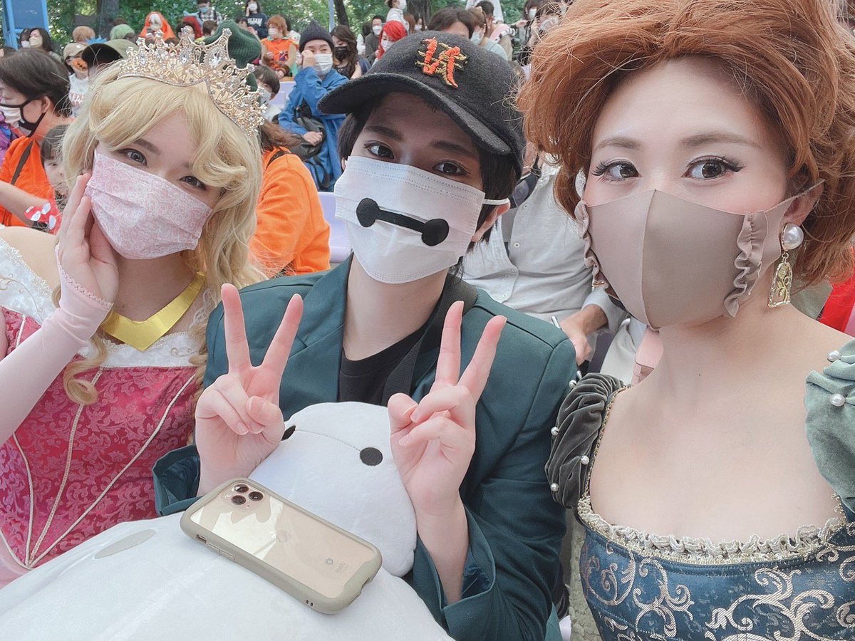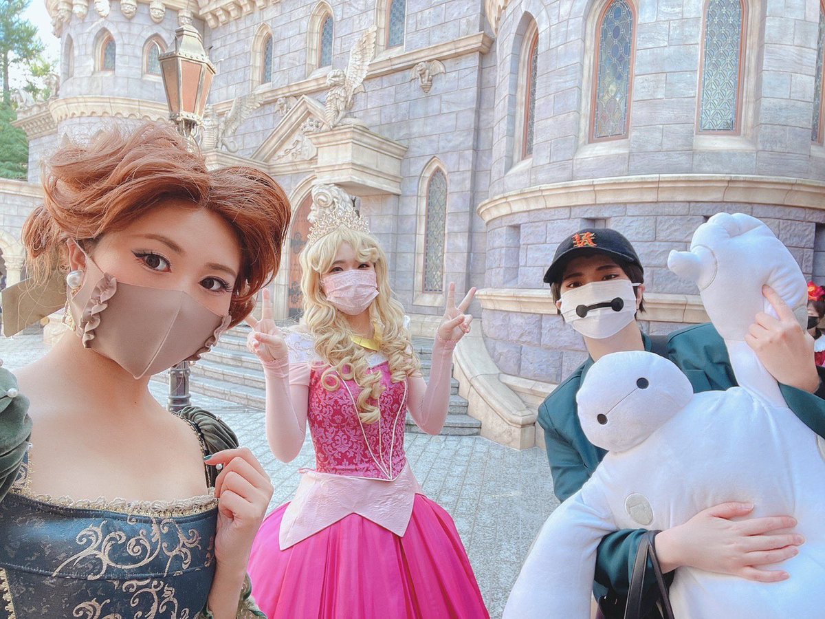 遅報🎃 両手に姫でにやにやしちゃう1日でした☺️✨👏 CMBの実質先頭当たったし、シェフミもグリももり沢山で本当に楽しかった〜〜〜! るなちゃん、はれちゃんありがとう〜〜〜!!! 🛌@sa_kuya_14 🌹@disney1118dream #Dハロ仮装2021