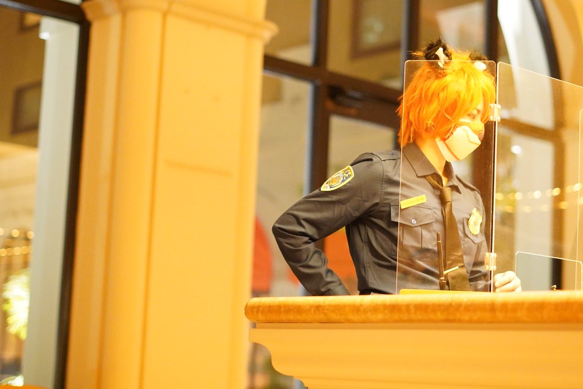 ホテルにチェックイン手続きしてるとこをかっちょよく撮って頂きました😳いつとのことながら盛れすぎだろめざめ神…🙏 ニック🦊まさとし カメラ📸めざめ@Delicious78ham #Dハロ仮装2022 #Dハロ仮装