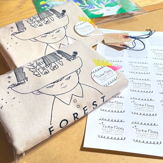 トートバッグのパッケージとシール貼り完了✨ #イラスト好きな人と繋がりたい #イラスト #森のファンタジー