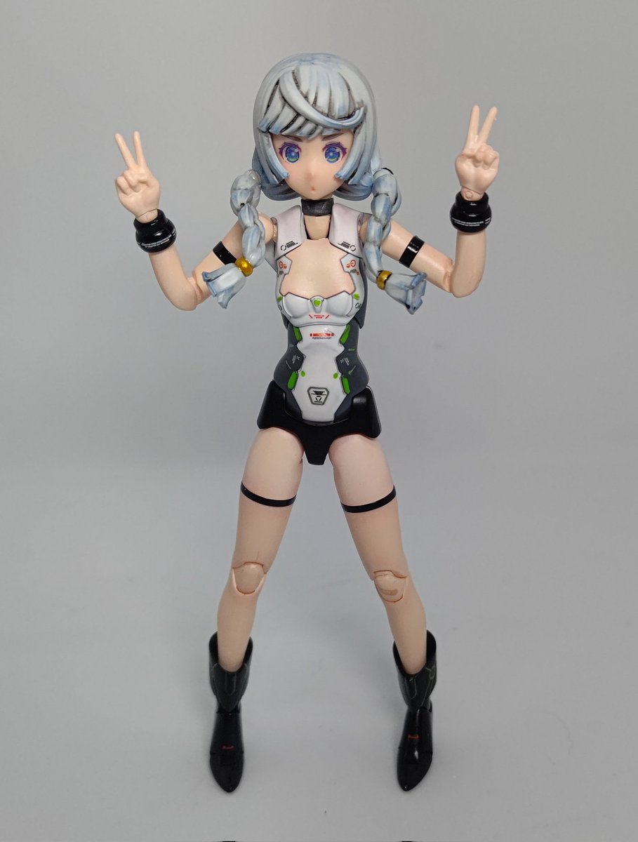 パーツ取りに買って積んでた忍者をがっつりと作り直して供養してみる 某スレで教えてもらった3㎜穴にビーズを嵌め込む手法がすごくいいっすねぇ… 今後もやろう… #メガミデバイス #朱羅忍者