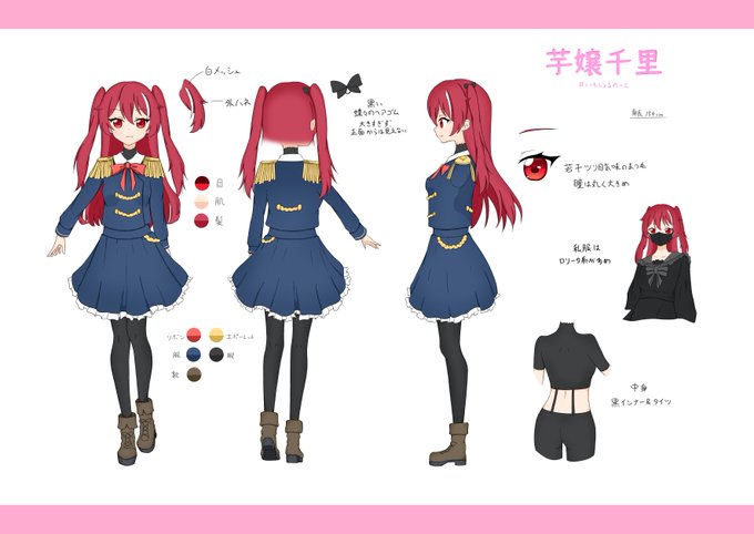 節目と言ってはなんですが、ようやっとうちの子の三面図を用意しました!!!! 既にたくさん描いていただいてますが、これからもぜひハッシュタグ #いもじょるのーと をつけて描いていただけるとうれしいです!!!