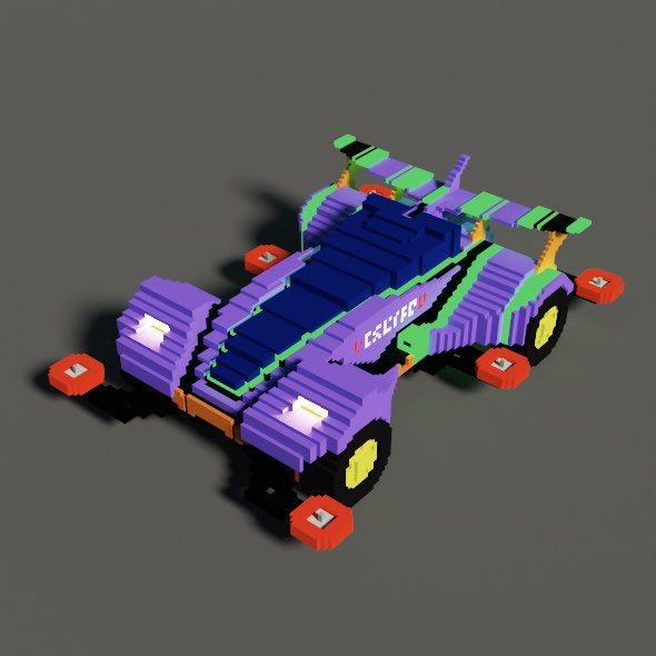 自分なりに空力とかの要素を入れて(知らんけど)ボディを作ってみました🏎 なんとなく …ぽい感じには仕上がったので、いつかクリプト四駆的なコレクションを出してみたいです。 #voxelart #ミニ四駆 #Crypto4WD