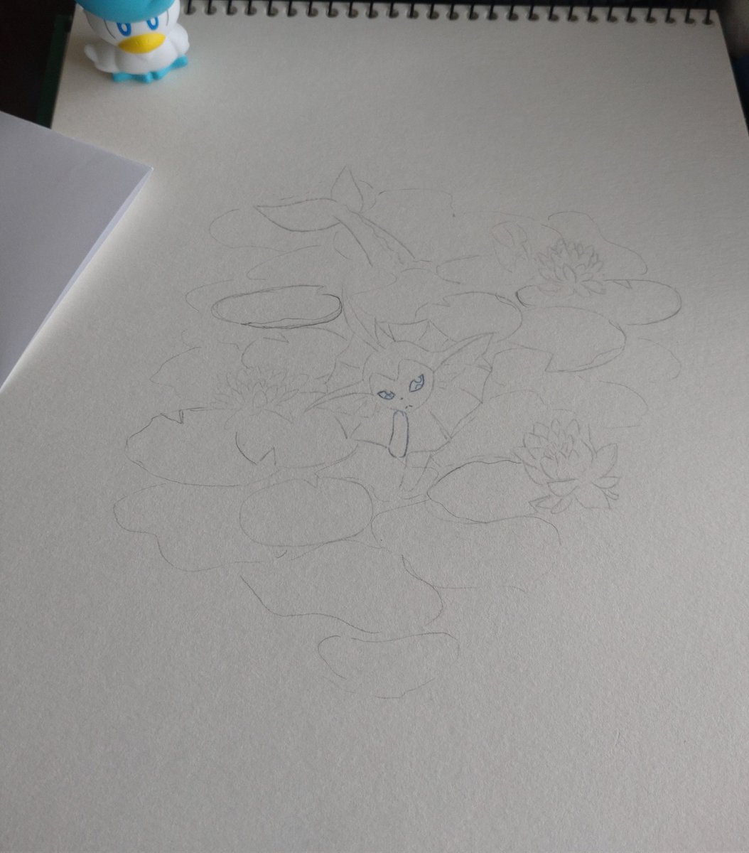 #このタグを見た人はラフ画とその完成絵を見せる お気に入りのシャワーズ🪷