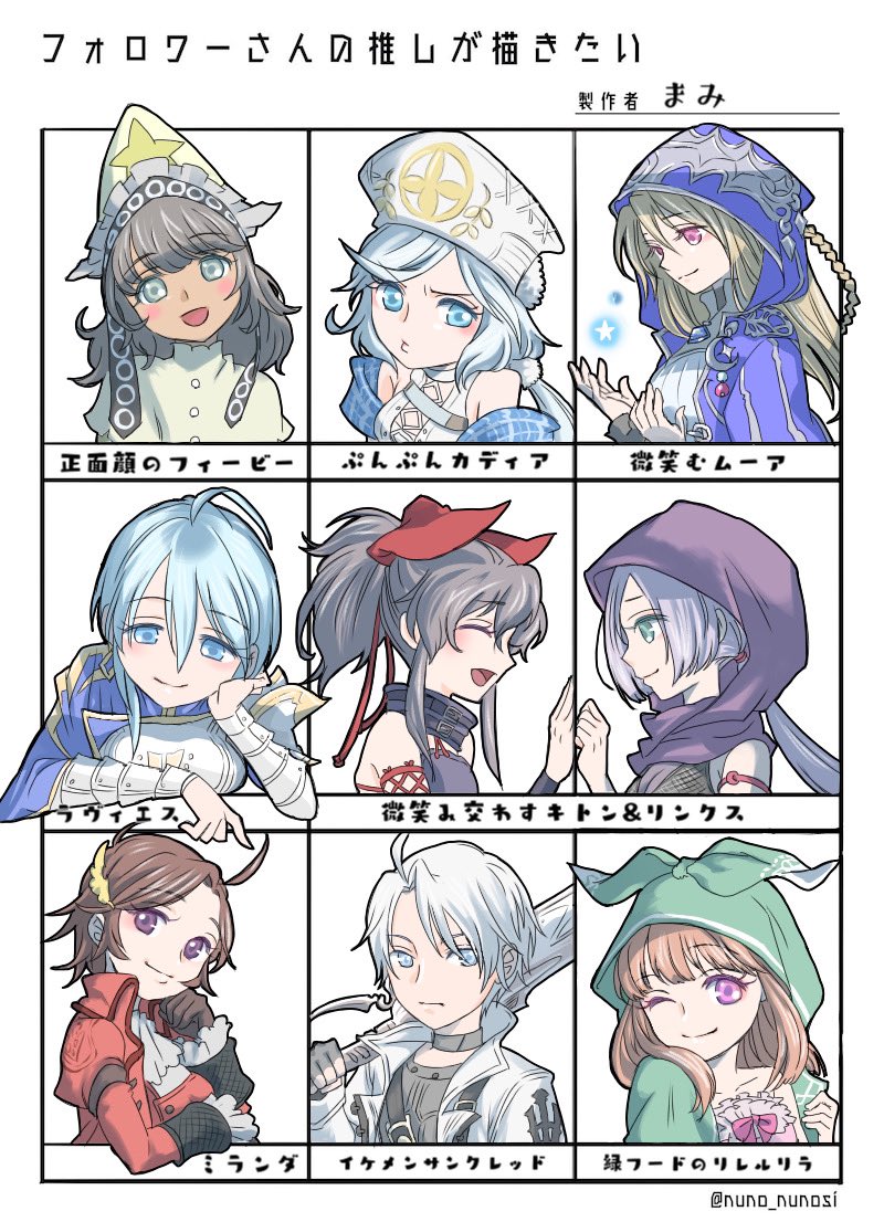 #フォロワーさんの推しが描きたい ヘフティさん、紅葉さん、エレノアさん、ニホンヘイさん、ちゃーちるさん、ショパンさん、あんじぇさん、えるるさん、かしわもちさん 描かせてくださりありがとうございましたーーー♡ 皆様のリクエストイメージに近いかドキドキ… #幻影戦争 #ファンアート
