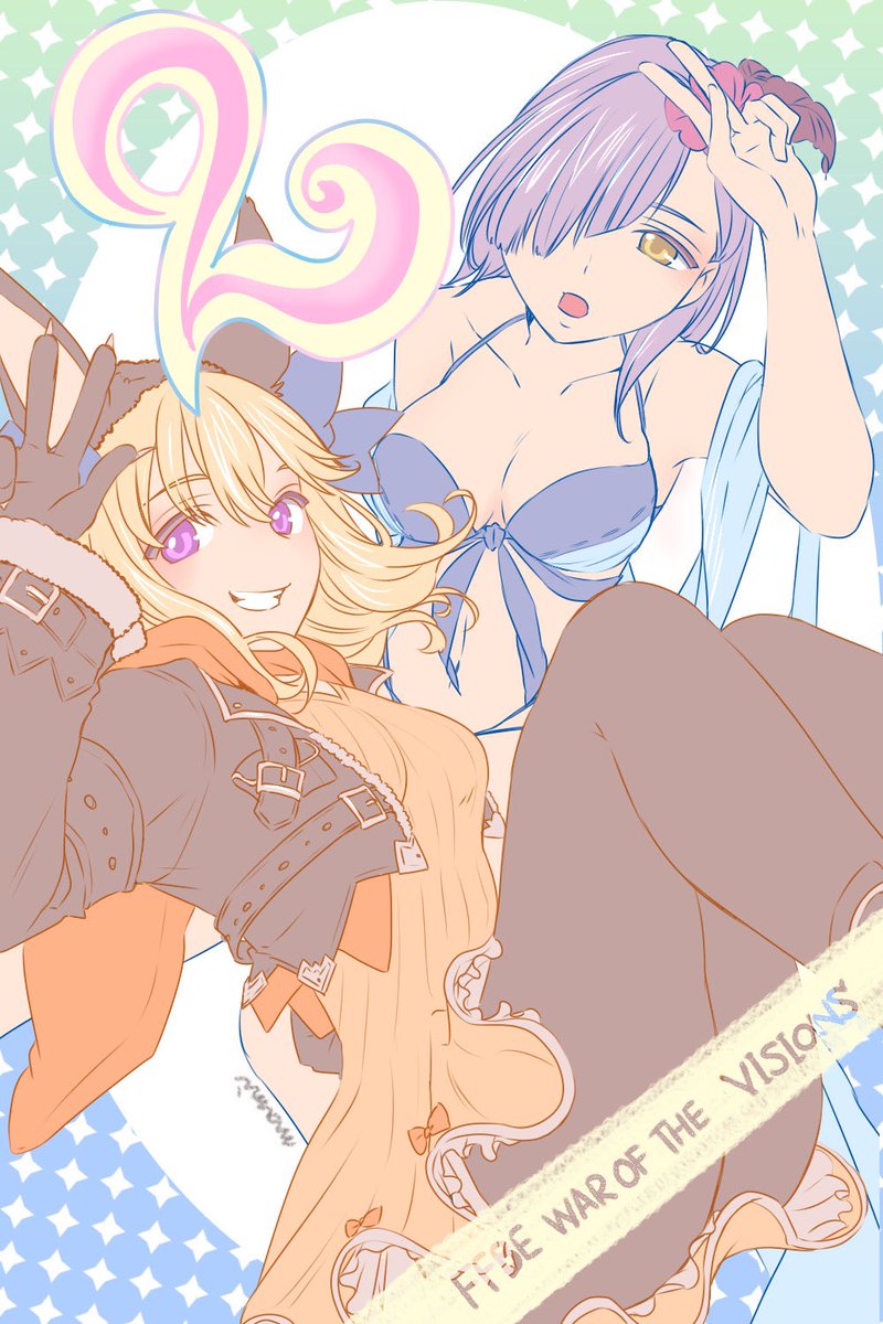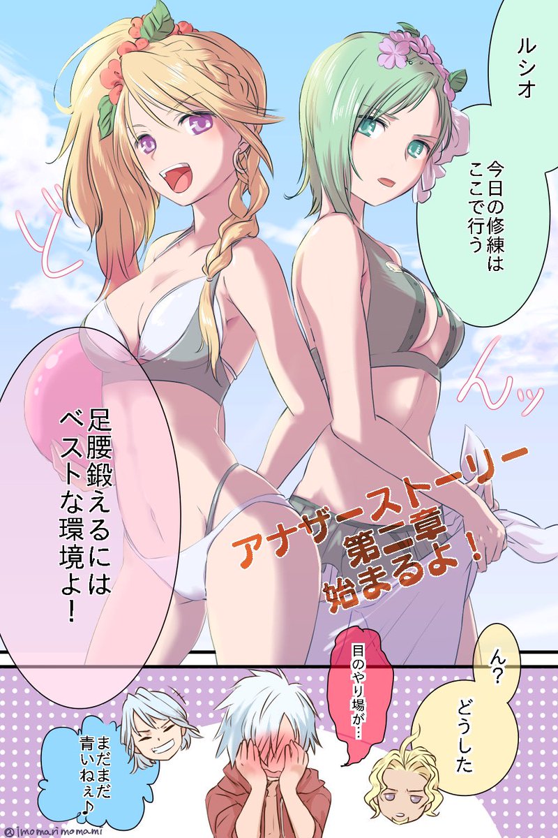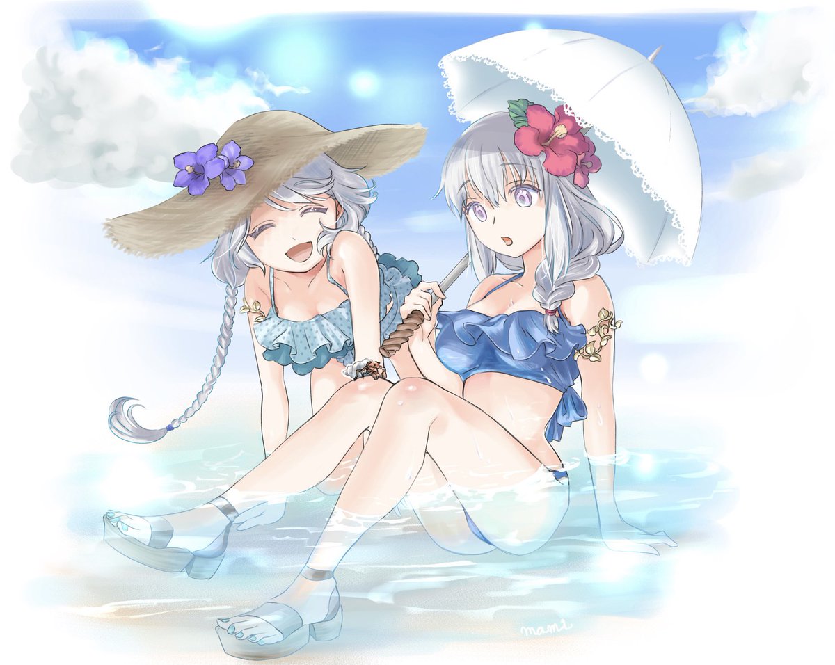 #フォロワーさんの推しが描きたい @kurone_FF さんの推し・グラセラちゃんです!夏ですしね!初の海遊び満喫中の姉妹です(カディアちゃんは私の趣味w) くろねさんに届きますように…( ノД`)シクシク #幻影戦争アート