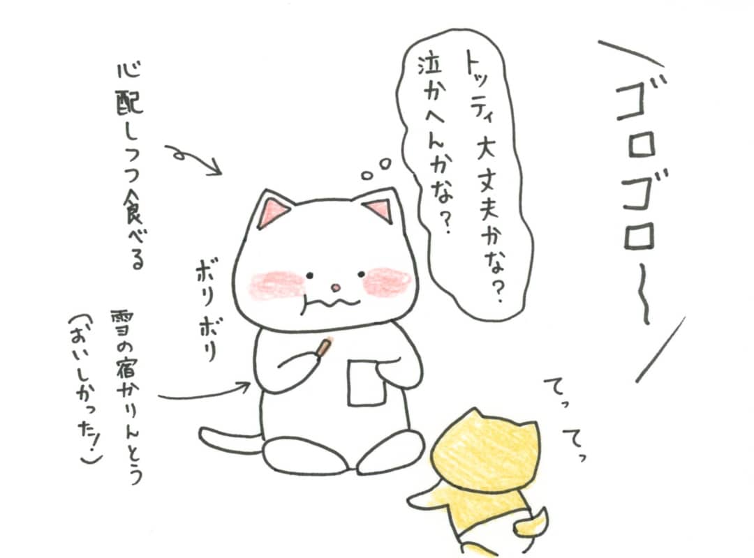 ばーん! 「今年のクリスマスプレゼントはいもちゃんにゃー!」 アームにつかまったいもちゃん、そのままラッピング工場へ🎁 ちゃっかりラッピングされて帰ってきました✨ 素敵なクリスマスを🎄🌟 #イラスト #色鉛筆 #ほっこり #オリジナルイラスト #Christmas #癒し #おもちゃのくに twitter.com/imonekotaisa…