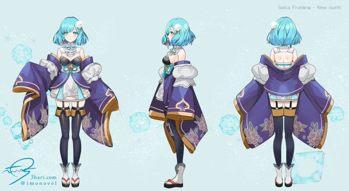 24 115 スピカ・フリューリングさんの新衣装デザインを担当させていただきました!よろしくお願いいたします🍬 (お裁縫(実装)は別イラストレーターさまです。いもいちは衣装デザイン・三面図のみ) 21/08/13 17:31