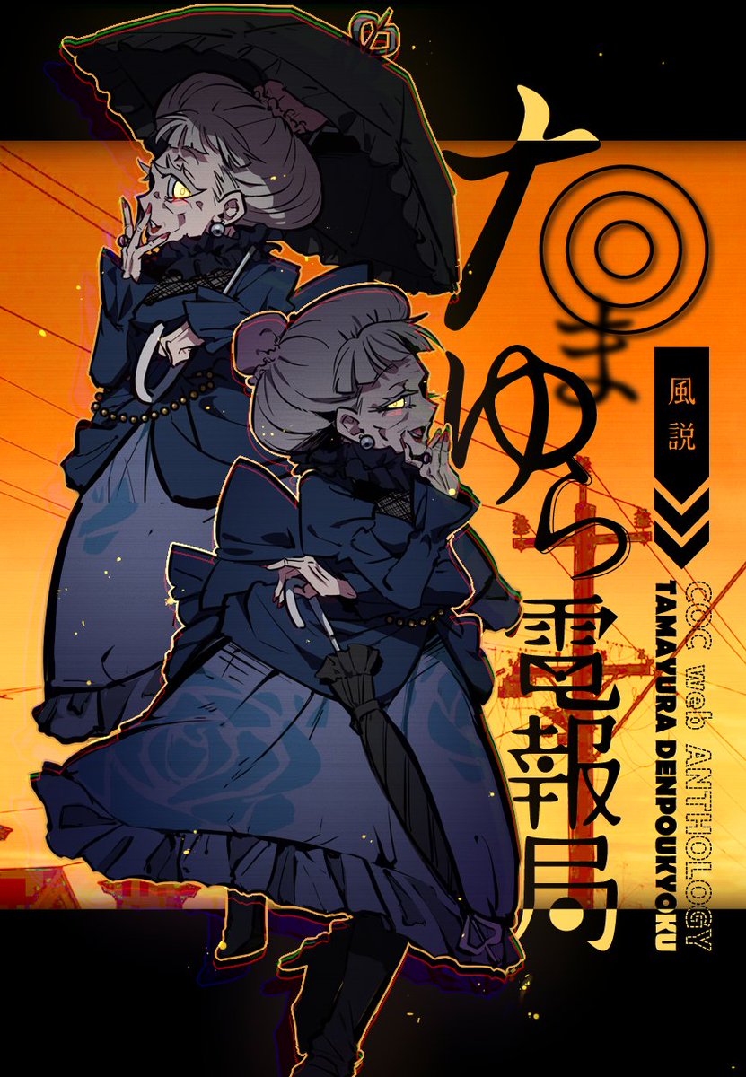 web上で都市伝説をテーマにしたクトゥルフ神話TRPGシナリオを発表していく企画だそうです!! 自分は噂好きそうなロリータババアを描かせていただきました✊ #風説たまゆら電報局