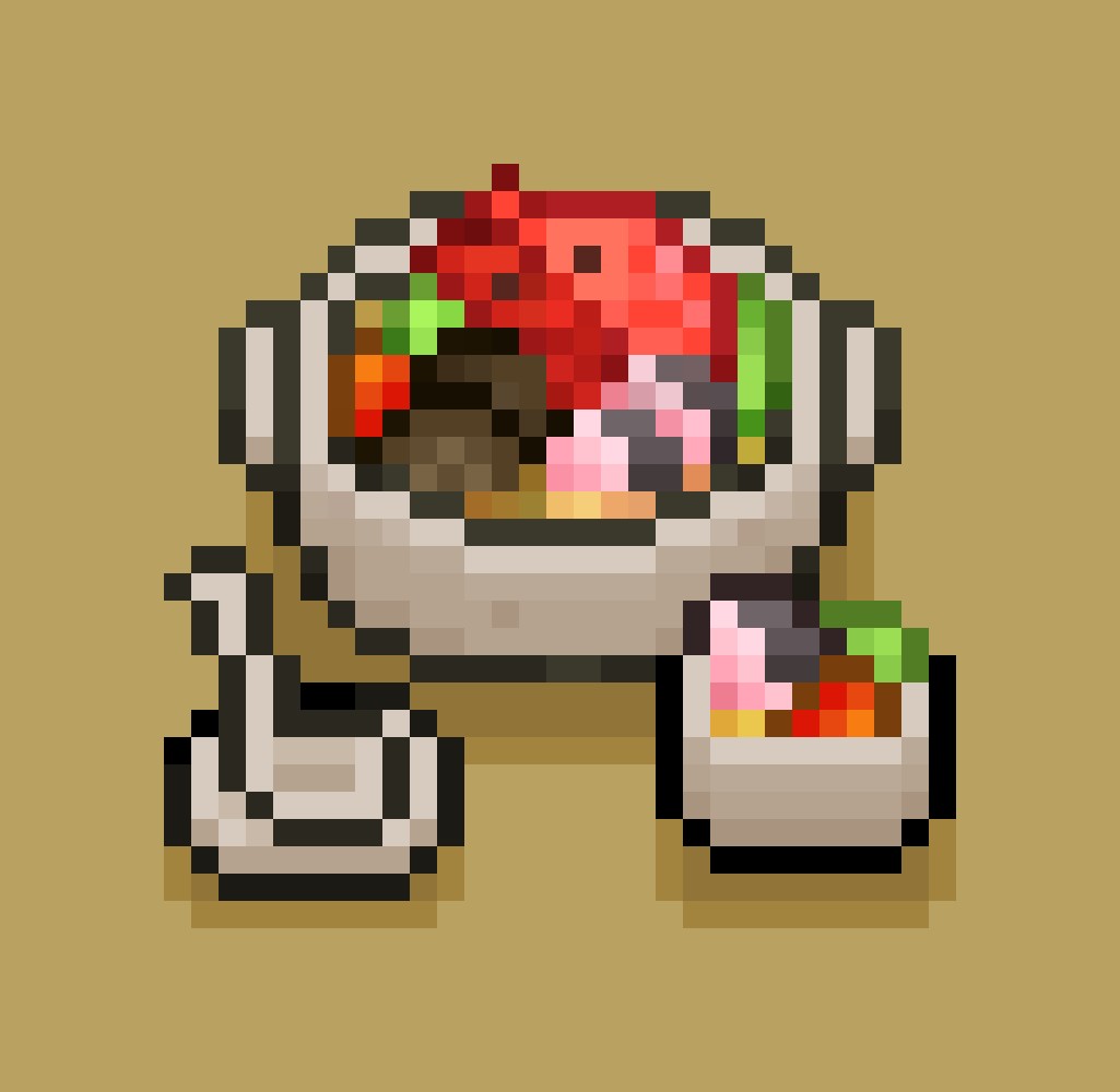 #pixelart #ドット絵 「海老鍋」 まだまだ寒いので鍋が食べたいですね🍲 海老が一生うまく行かないタイムラプスa.k.aタイムプラスも一緒にどうぞ。 twitter.com/i/web/status/1…
