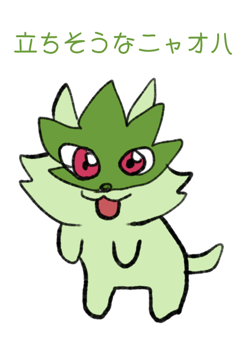 リハビリがてらに描きました。 記憶だけで描いた「立ちそうなニャオハ」