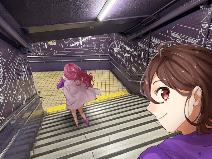 28 86 駅の階段がいい感じだったから描いた! #ナナピク 23/05/16 00:53