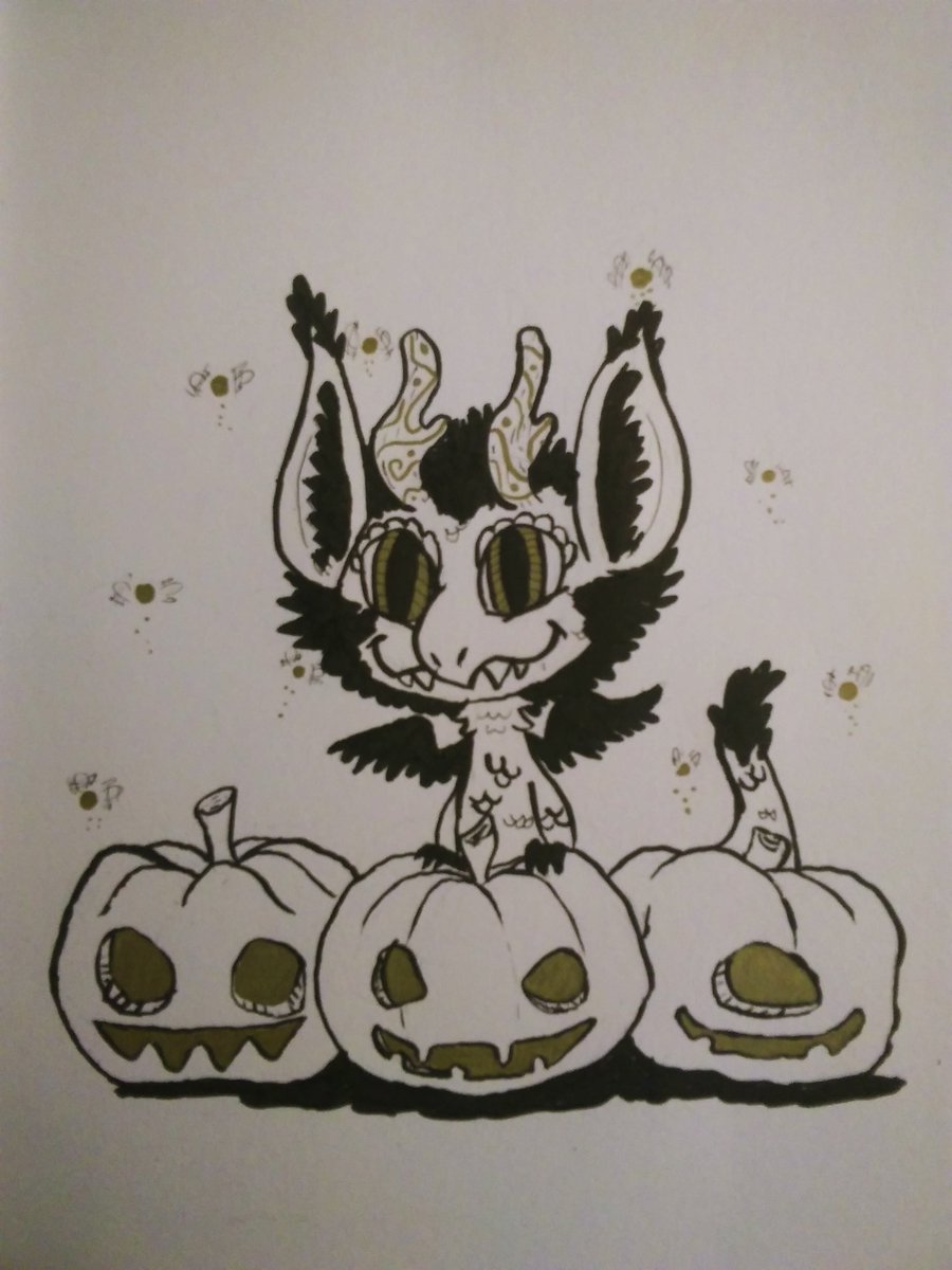 #Inktober2019 Some kinda gargoyle? harpy?? It kinda looks like a lykoi cat