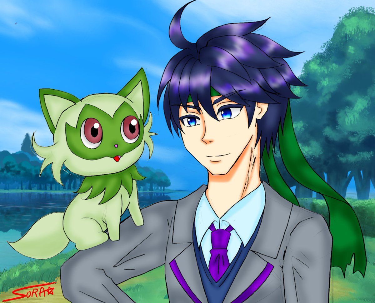 推しと推しポケを絡ませたい欲が出たので試しに描いてみた(笑)