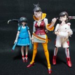 おでかけに向けて立体でんこの細かいアップデート。 ・リオナさんのニヤケ顔作製。 ・ほこねさんは気に入ってなかった笑顔をちょっとお直し。 ・チコさまはドリンク持ち手をご用意しました😊 #でんこ立体化 #駅メモファンアート
