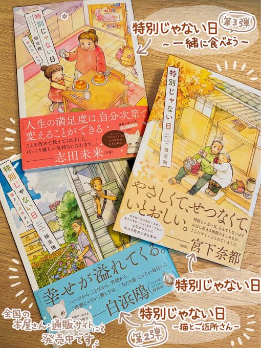「特別じゃない日」全国の本屋さん、Amazon等ネット書店さんでシリーズ3冊発売中です🍠🐈🥞 どうぞよろしくお願いします🙇♂️ 特別じゃない日■amzn.asia/d/7VP9xNb 特別じゃない日 猫とご近所さん■amzn.asia/d/11Mo6eT 特別じゃない日 一緒に食べよう■amzn.asia/d/1lI3HZ9