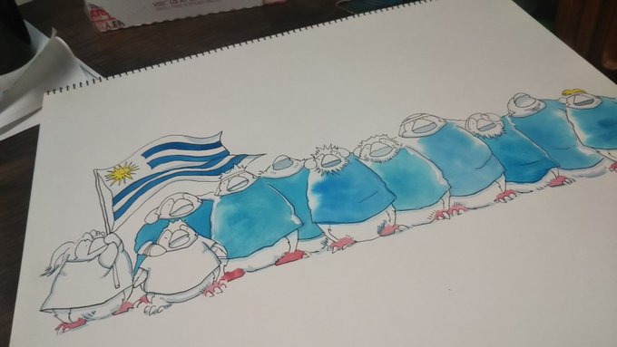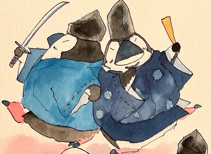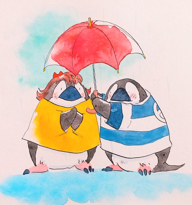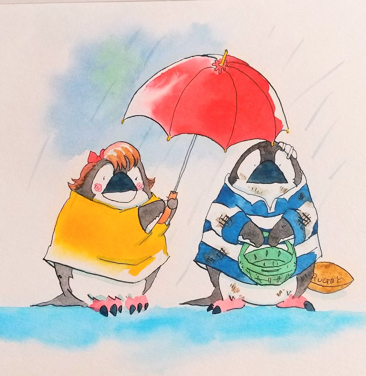 今日も、雨が降りそうな空ですね🙂 「お疲れさま、一緒に帰ろう」🐧 #梅雨 #ラグビー #ペンギン #penguins #illustration #水彩 #watercolor #winsorandnewton #ウィンザーアンドニュートン #なでがたペンギン