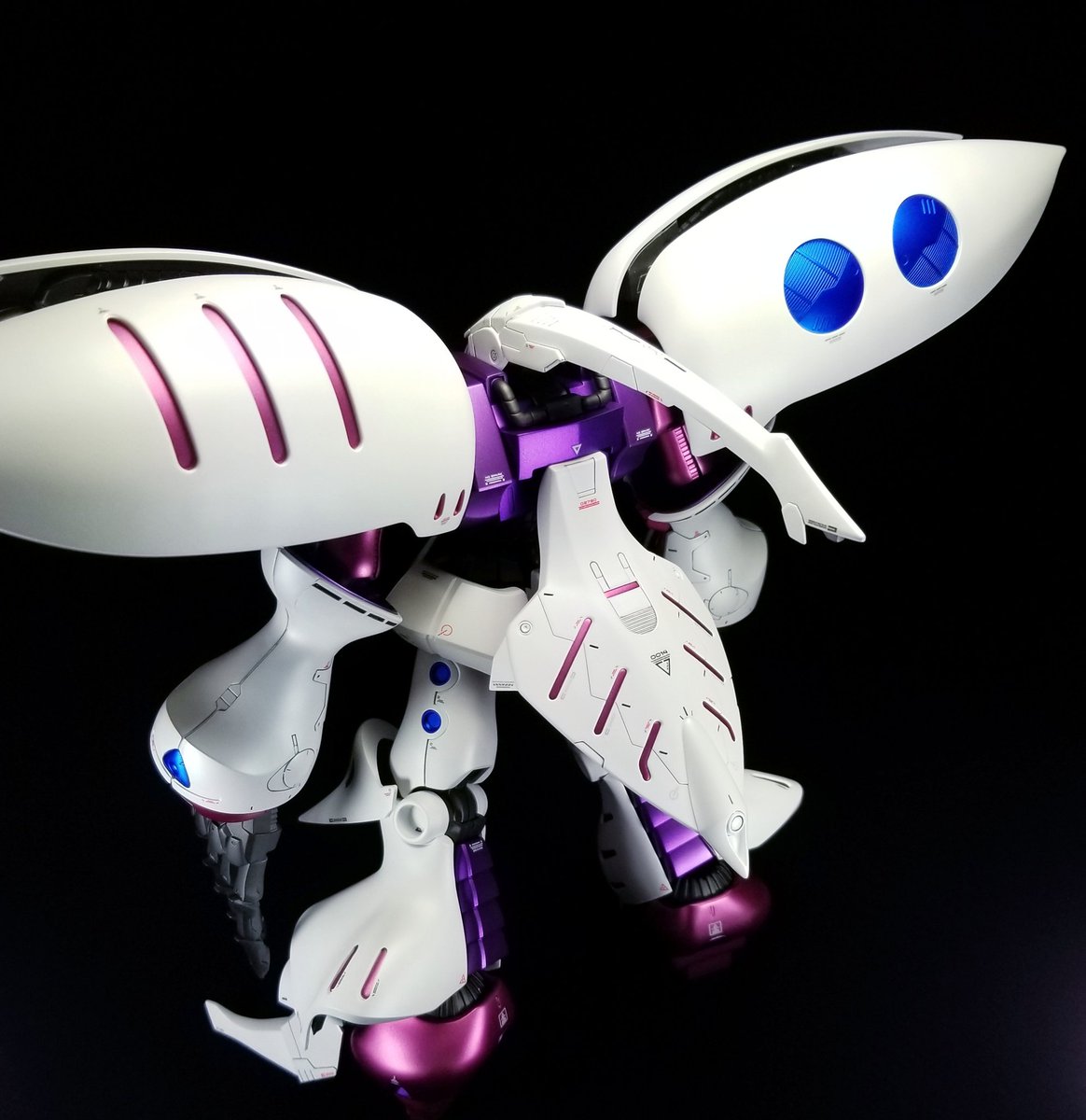 キュベレイダムド完成しました🎉 ハマーンカラーで塗装し、 マットメタリックに仕上げてみました⭐️ 写真では分かりにくいですが、ホワイトはパール塗装です。