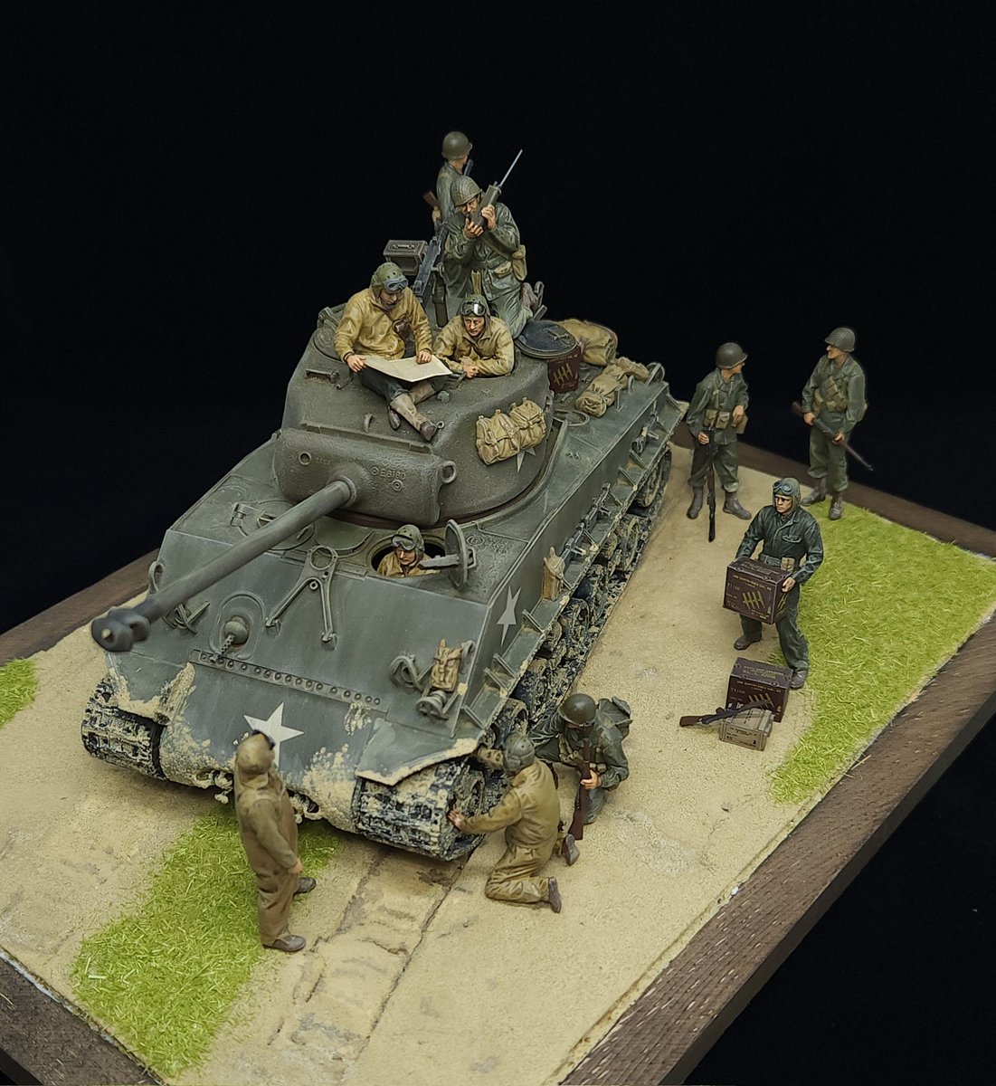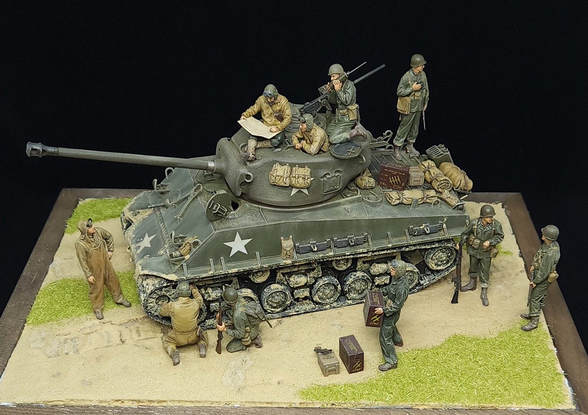 タミヤ1/35 シャーマン イージーエイト完成🎉 戦車4作目 初めてのヴィネット作製 それっぽく出来たかな? 大変でしたがまた作ってみたいですね👍