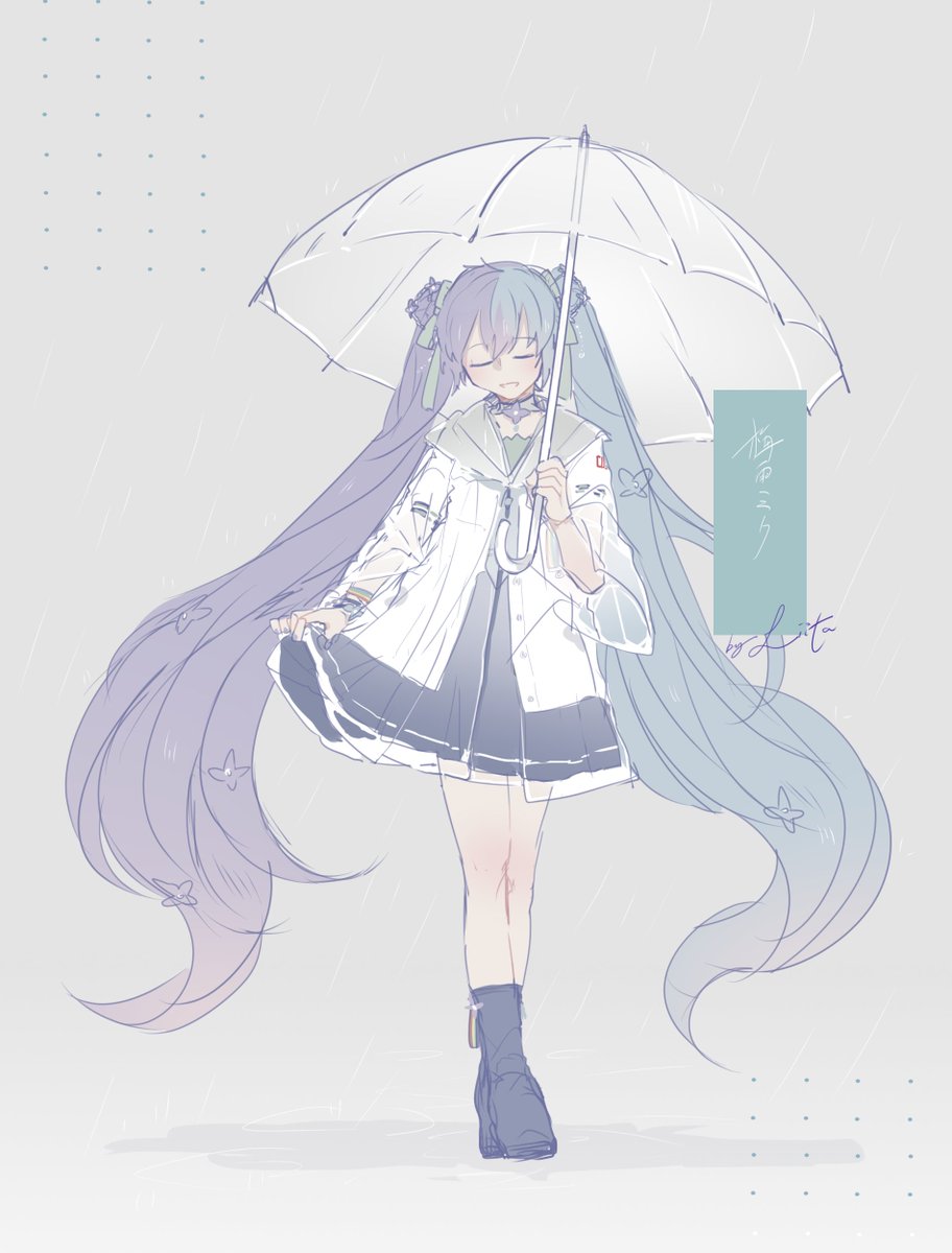 41 227 いきなりですが梨伊荼さん(@YAMILUNA39)の梅雨ミクを描かせていただきました!らくがき程度で申し訳ありませんが、相変わらず素敵なセンスのデザインでめちゃくちゃ好きです😭服も色合いも描く途中に気持ちよさを覚えちゃうほどきれいで描きやすかったし、楽しかったです!!✨💕 23/06/09 09:06