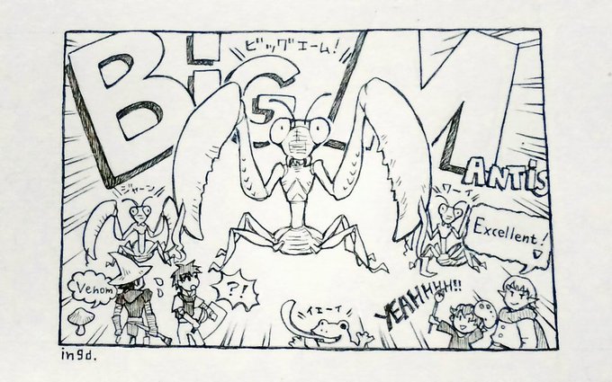 ビッグマンティスさん倒した記念に描きました テンションが妙に高い #ヴァルハラナイツ2