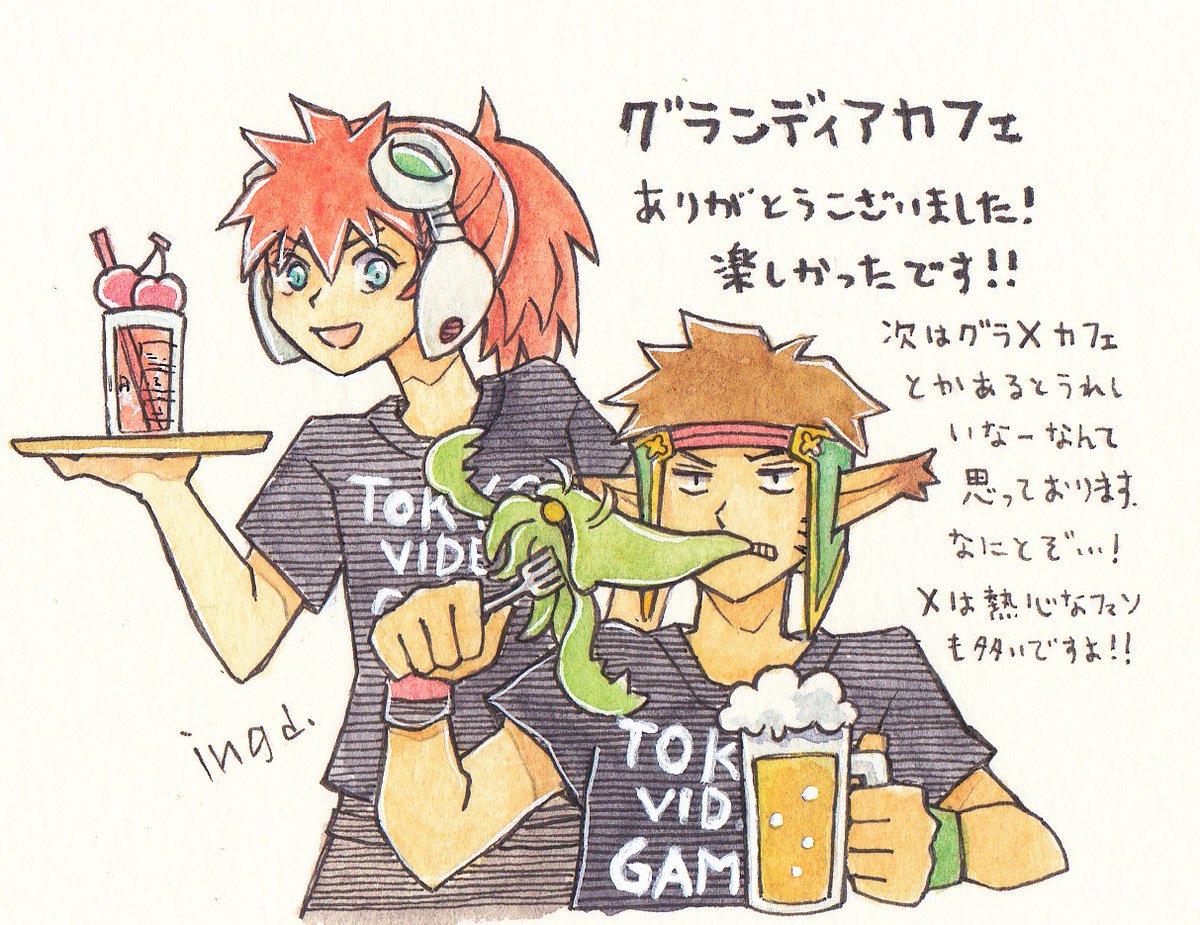 #グランディア #akibaTVG たいへん遅くなりましたが、グランディアコラボバー開催ありがとうございました!お疲れさまでございます! ラプジャスバール好きなので以前本谷さんが描いていたこの2人を描きました バールは…?