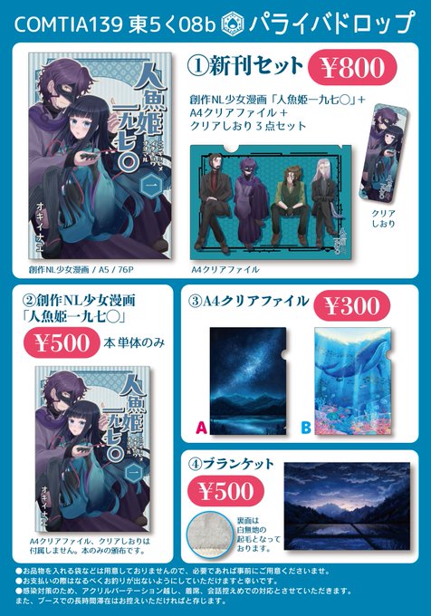 明日のコミティアのお品書きと新刊サンプルを改めて! 【東く 08b パライバドロップ】 フロマージュブックス様で通販もございますので、会場に来られない方はぜひご利用くださいませ!↓ melonbooks.co.jp/fromagee/circl… #コミティア139 #COMITIA