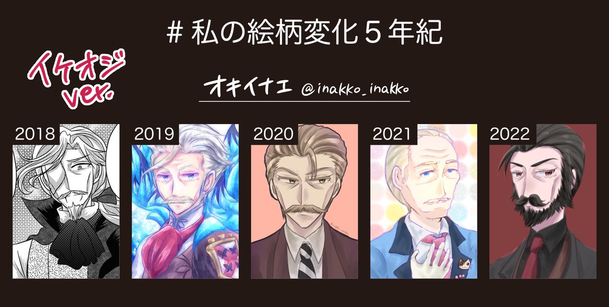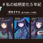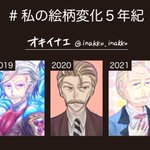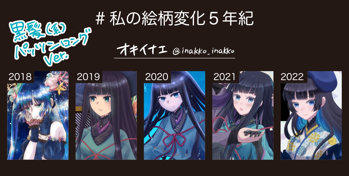 #私の絵柄変化5年紀 素敵なタグ参加させていただきます~! イケオジと黒髪(系)パッツンロングどちらもよく描いていたので分けております! 《黒髪(系)パッツンロングVer.》 19~21は全部創作漫画ヒロインの渚ちゃん イケオジVer.はツリーに✨