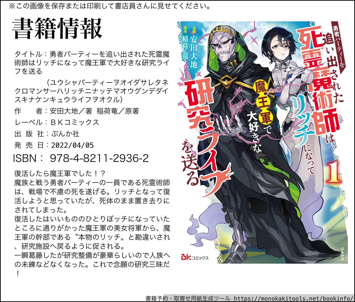 勇者パーティーを追い出された死霊魔術師はリッチになって魔王軍で大好きな研究ライフを送る chapter7 / 漫画/安田大地 原作/稲荷竜 nico.ms/mg664987 #ニコニコ漫画 seiga.nicovideo.jp/comic/57027 単話で最新話を読める各種販売サイトと発売中のコミック1巻もよろしく! bunkasha.co.jp/book/b604208.h… twitter.com/bk23412315/sta…
